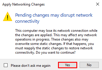 - Akan muncul pop up pemberitahuan bahwa koneksi akan terganggu karena ada perubahan network yang dilakukan.